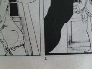 Fig. 1. A sinistra la prima pagina tratta dalla prima ristampa (reca lo stesso numero dell'originale);a destra la prima pagina tratta dalla terza ristampa, col numero sfasato di 2 unità. - Falso creato dalla prima/seconda ristampa . E' il tipo più diffuso e non facilmentericonoscibile, dal momento che le prime 2 ristampe avevano un blocco-fumetto del tuttoidentico all'originale. Quindi la storia cominciava regolarmente a p. 3, terminava a p. 98 ederano presenti i titoletti delle suddivisioni interne sopra indicati. In questo caso, si puòriconoscere il falso osservando il font con cui sono stampati i numeri di pagina all'internodell'albo. L'originale aveva i numeri di pagina stampati con un font molto simile al "CenturyGothic" delle opzioni del programma Microsoft Word©, cioè con una forma piuttostosquadrata (fig. 3).
