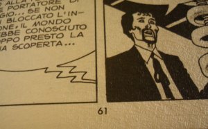 - Falso creato dalla terza ristampa (Collezione book). Sicuramente è il meno diffuso ancheperché facilmente riconoscibile. La terza ristampa infatti è caratterizzata da una copertinarigida, cartonata. Tra la seconda di copertina e la prima pagina del fumetto è presenteun'ulteriore pagina in cartoncino, con un disegno evocativo della storia, che vieneconteggiata nel computo complessivo dell'albo. Di conseguenza, la prima pagina del fumettorecherà il numero 5 e NON il 3, come invece compariva nell'originale e nella prima eseconda ristampa (fig. 1).